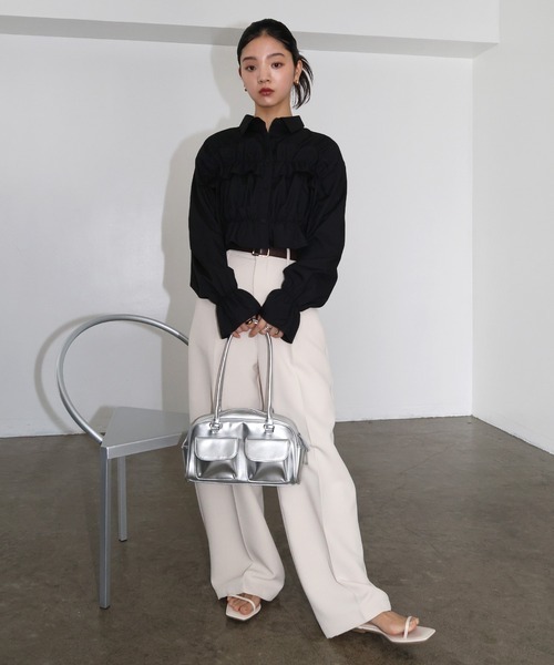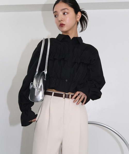 日本🇯🇵連線 and me 荷葉邊皺皺短版襯衫 皺褶感 荷葉邊 條紋 襯衫 短版 休閒 4色(任買兩件711免運)/預購