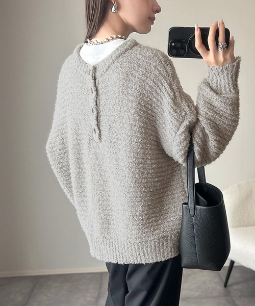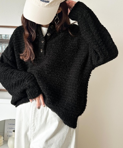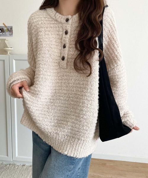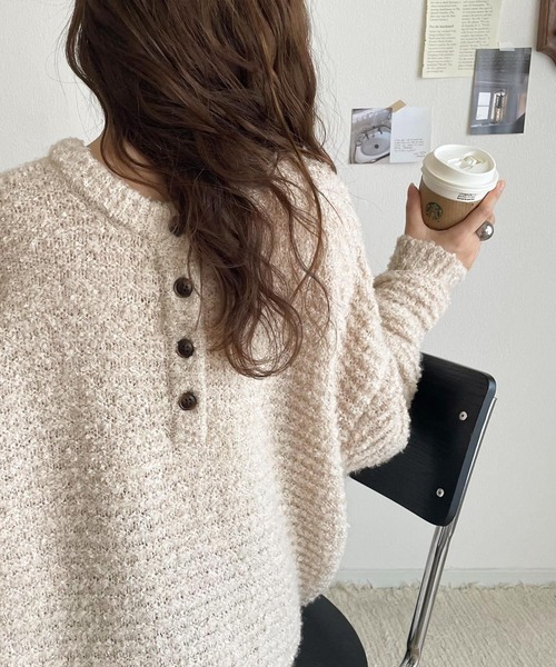 日本🇯🇵連線 Classical Elf 圈圈毛絨亨利領針織衫 兩面可穿 圈形紗線 針織衫 亨利領 長袖 4色(任買兩件711免運)/預購