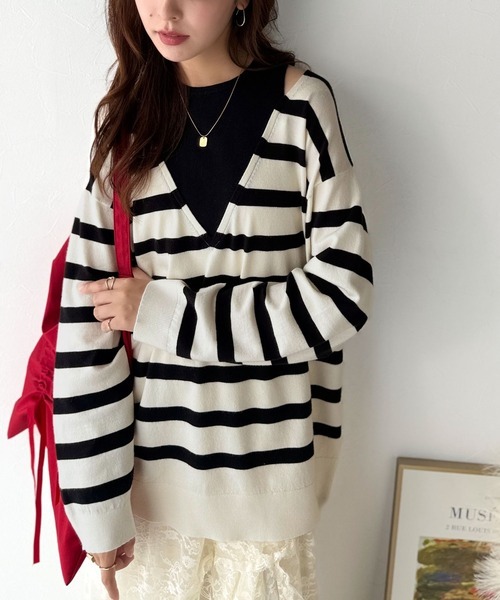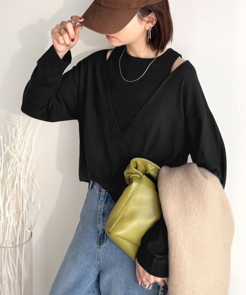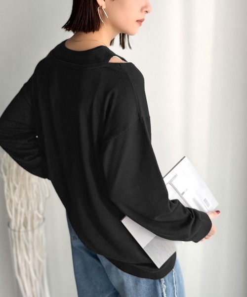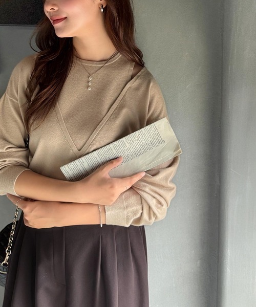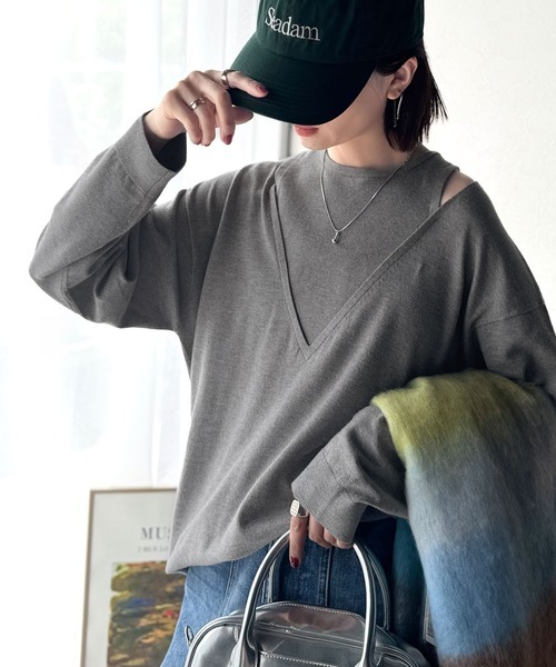日本🇯🇵連線 Classical Elf 分層設計開衩針織衫 假兩件 針織衫 層次感 鏤空 長袖 4色(任買兩件711免運)/預購