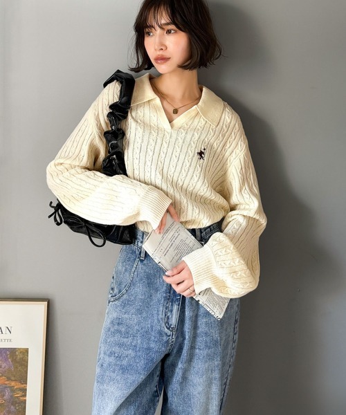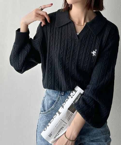 日本🇯🇵連線 Classical Elf 刺繡絞花針織Polo領 刺繡 針織衫 Polo衫 休閒 長袖 5色(任買兩件711免運)/預購