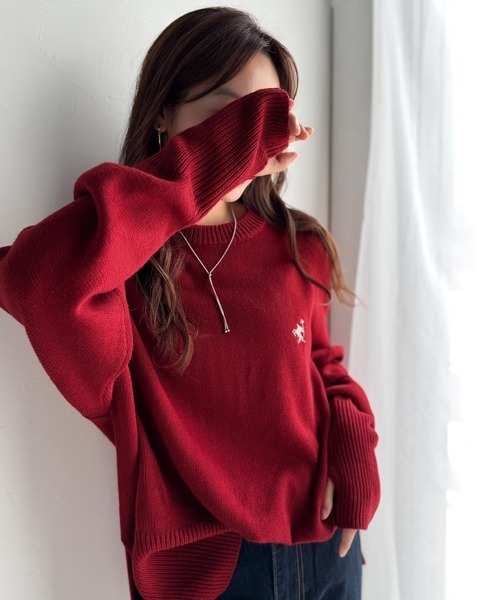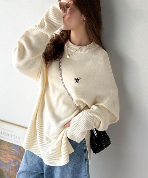 日本🇯🇵連線 Classical Elf 胸前刺繡寬鬆針織衫 拇指孔 針織衫 刺繡 休閒 長袖 5色(任買兩件711免運)/預購