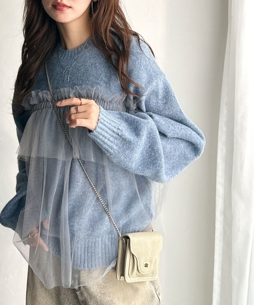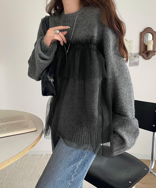 日本🇯🇵連線 Classical Elf 薄紗拼接蓬鬆袖針織衫 針織衫 薄紗 拼接 長袖 5色(任買兩件711免運)/預購