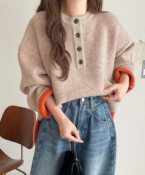 日本🇯🇵連線 Classical Elf 雙面配色亨利領針織衫 針織 針織衫 亨利領 套頭衫 復古 毛衣 長袖 6色(任買兩件711免運)/預購
