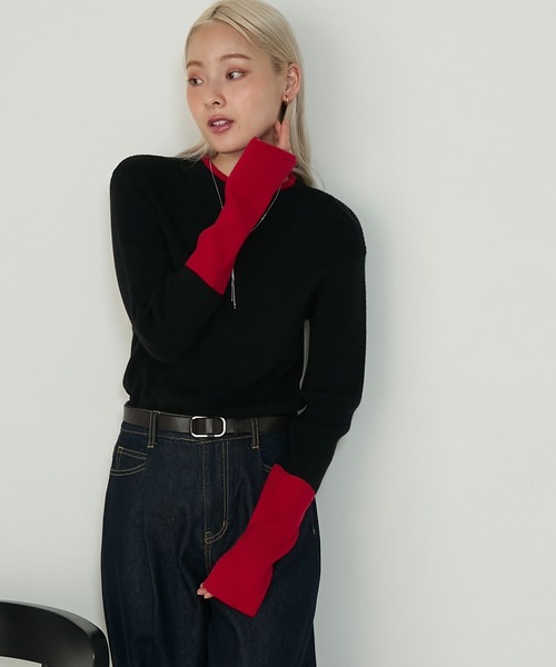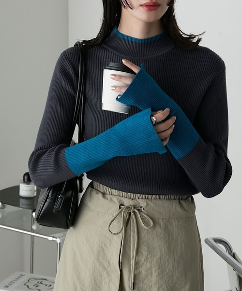 本週限時接單!! 日本🇯🇵連線 Forksy 袖口撞色開衩高領羅紋針織衫 羅紋針織 打底衫 內搭 套頭衫 長袖 吸濕排汗/發熱 6色(任買兩件711免運)/預購