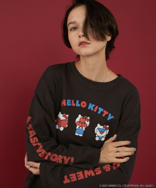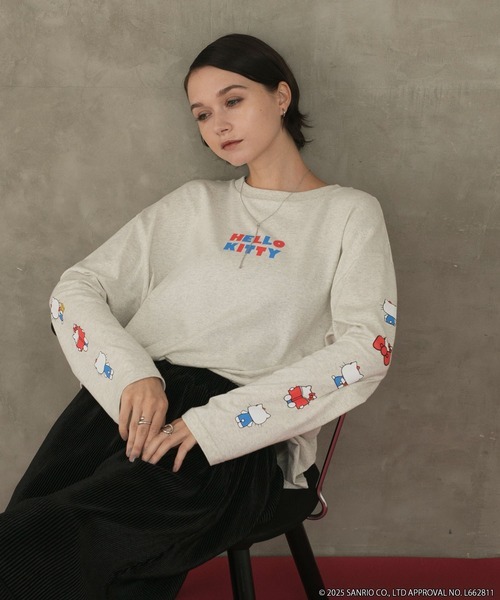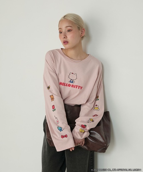 日本🇯🇵連線 Forksy x HELLO KITTY 凱蒂貓 超寬鬆印花長袖T恤 印花 插畫風 寬鬆 落肩 Oversized 長袖 休閒 4色(任買兩件711免運)/預購