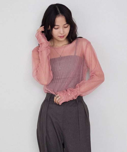 日本🇯🇵連線 Forksy 輕透感皺褶袖口透膚上衣 皺褶袖口設計 透膚 內搭 多層次 長袖 5色(任買兩件711免運)/預購