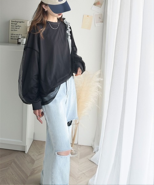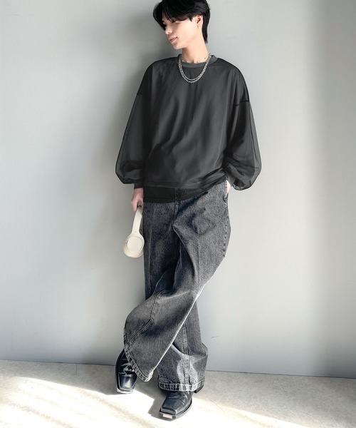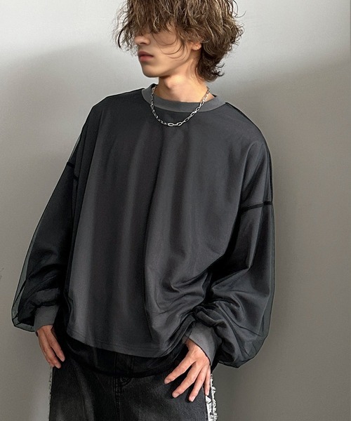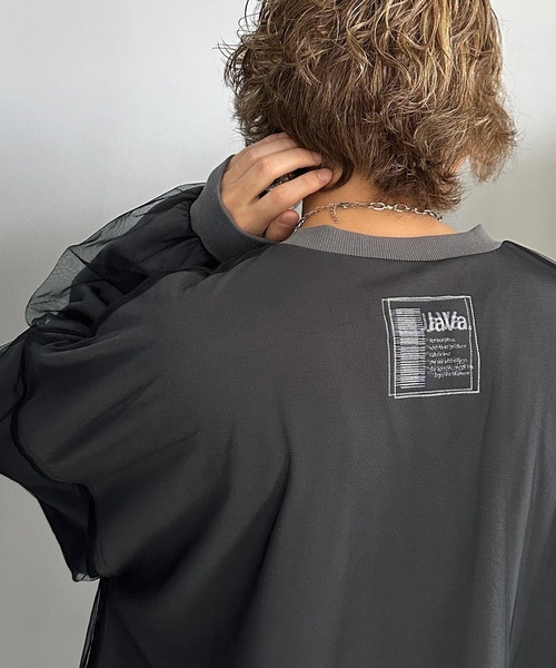日本🇯🇵連線 JAVA 雙層薄紗抓絨長袖T恤 背面Logo印花 長袖 薄紗 層次感 T恤 男女可穿 3色(任買兩件711免運)/預購