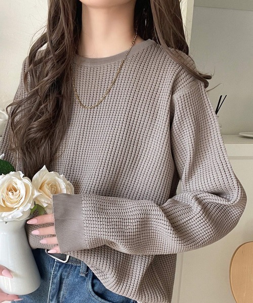 日本🇯🇵連線 JAVA 保暖圓領華夫格針織衫 華夫格紋 針織 寬鬆 長袖 保暖上衣 5色(任買兩件711免運)/預購