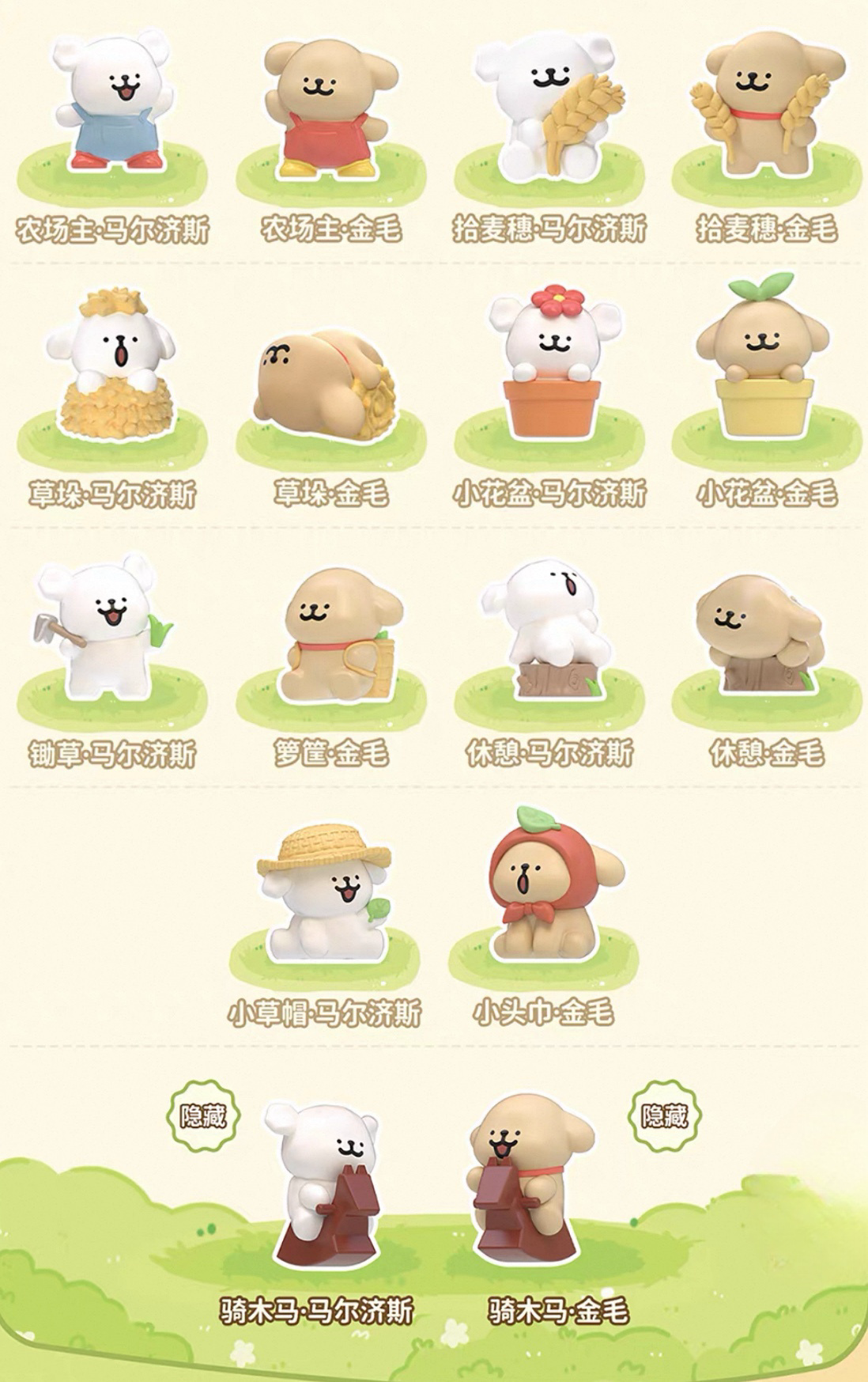 商品人物款式:農場主-金毛/拾穗小狗-金毛/稻草小狗-金毛/花盆小狗-金毛/籮筐小狗-金毛/偷懶小狗-金毛/