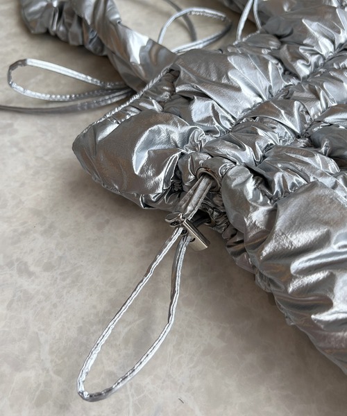 日本🇯🇵連線 Mily Bilet 閃亮縫線蝴蝶結抽繩皺皺包 單肩包 肩背包 手提包 大容量 3色(任買兩件711免運)/預購