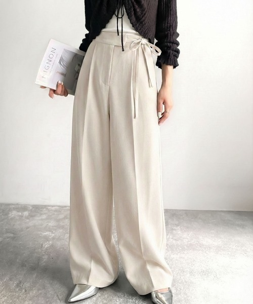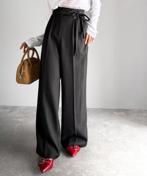 日本🇯🇵連線 Mily Bilet 少女風緞帶西裝休閒寬褲 休閒褲 西裝褲 緞帶 綁帶 長褲 褲子 5色(任買兩件711免運)/預購