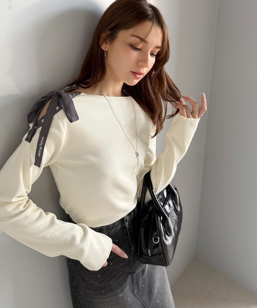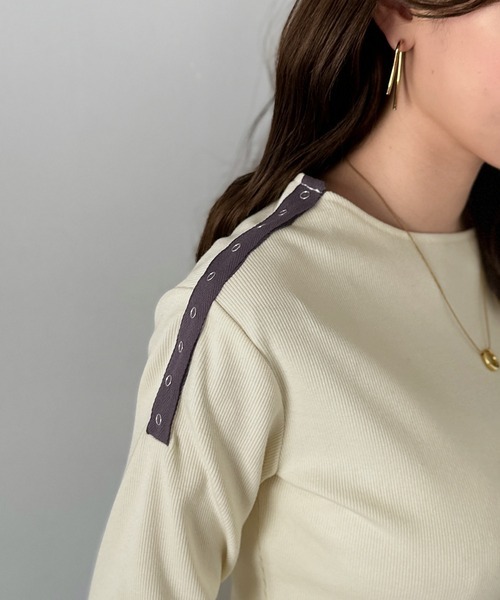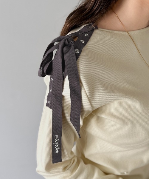 日本🇯🇵連線 Mily Bilet 像禮物一樣!肩部按扣綁帶上衣 露肩 綁帶 長袖 肩部排扣設計 4色(任買兩件711免運)/預購