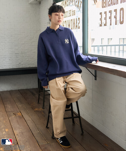 日本🇯🇵連線 MLB 日本支線 x FREAK&#39;S STORE 刺繡Polo領針織衫 隊徽 休閒 毛衣 針織衫 Polo衫 長袖 寬鬆 5款(任買兩件711免運)/預購