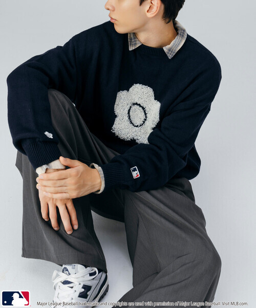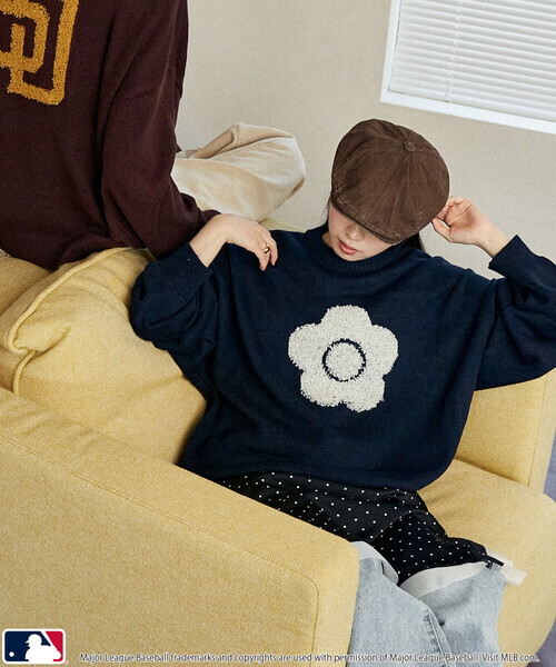 日本🇯🇵連線 MLB x MARY QUANT 正面雛菊&背面隊徽刺繡提花針織衫 隊徽 刺繡 休閒 毛衣 針織衫 長袖 寬鬆 3款(任買兩件711免運)/預購