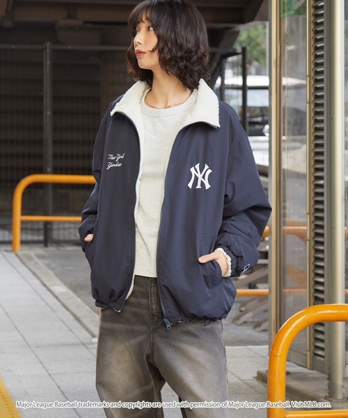 日本🇯🇵連線 MONO-MART x MLB 雙面可穿!!抽繩尼龍&熊寶寶粒絨夾克外套 隊徽 刺繡 長袖 寬鬆 外套 情侶款 4款(任買兩件711免運)/預購