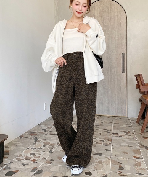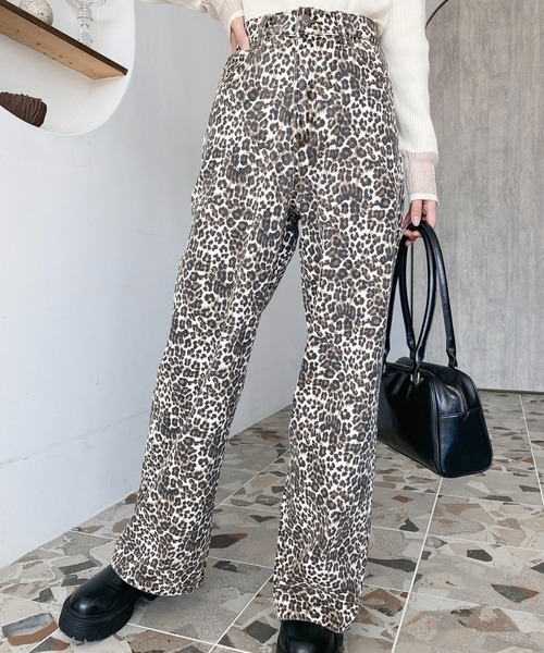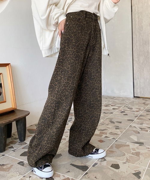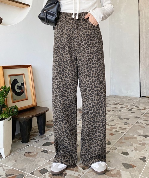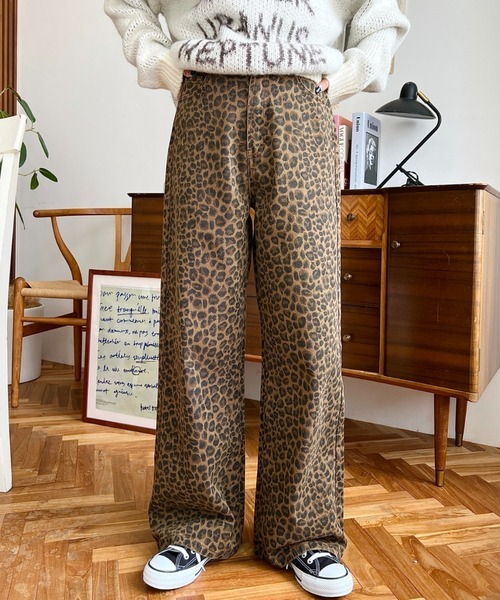 日系品牌服飾 moment+ 今年必備!豹紋牛仔長褲 豹紋單品 豹紋褲 牛仔褲 長褲 寬褲 直筒褲 休閒褲 4色(任買兩件711免運)/預購
