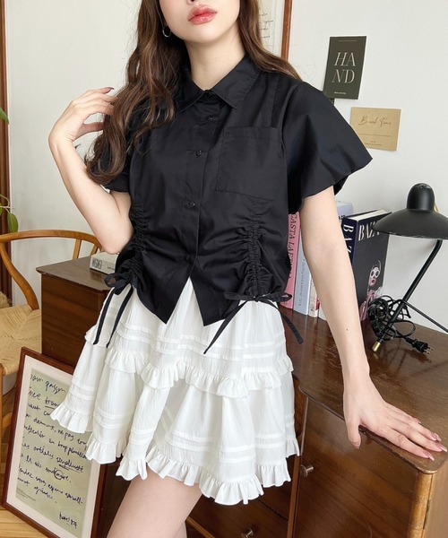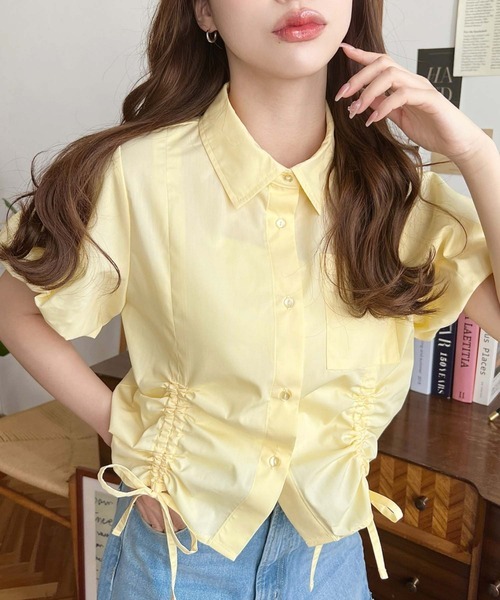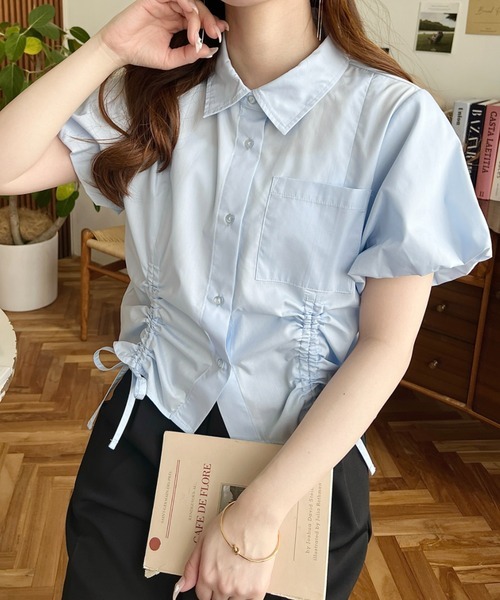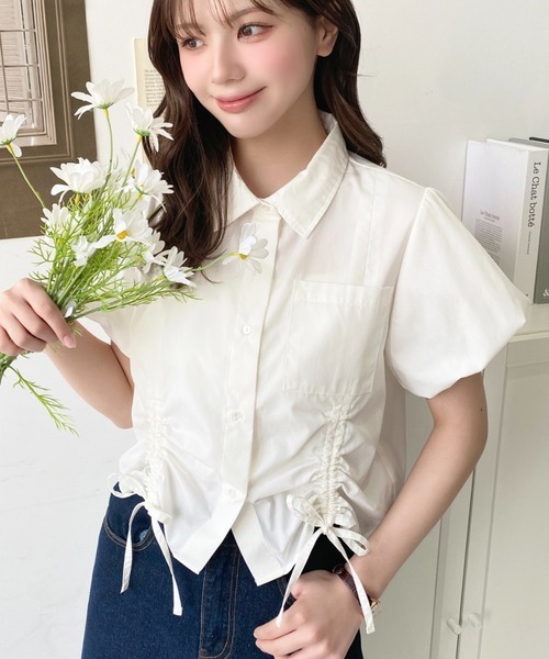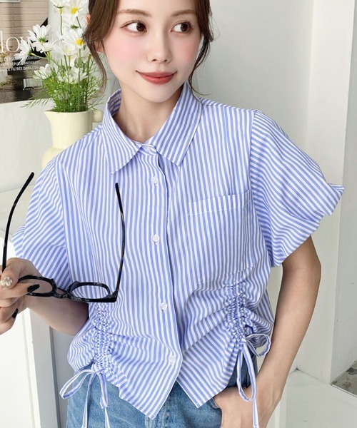 日本🇯🇵連線 Moment+ 緞帶抽繩泡泡袖短袖襯衫 緞帶 抽繩 泡泡袖 條紋 襯衫 短袖 6色(任買兩件711免運)/預購