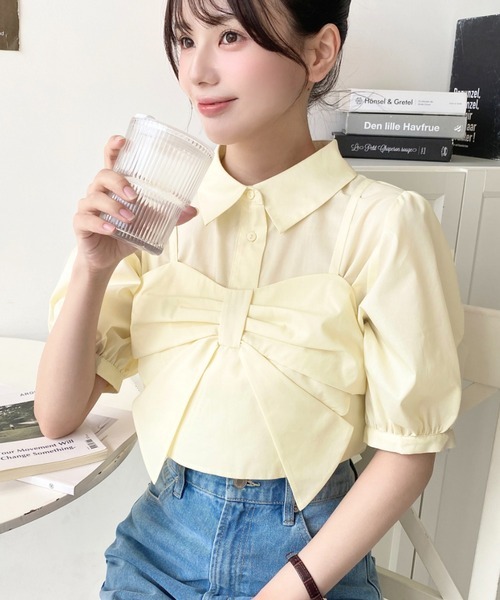襯衫&緞帶小背心可拆開,多種穿法一套滿足