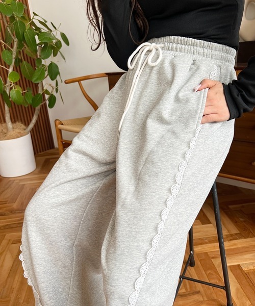 日系品牌服飾 moment+ 側邊蕾絲抽繩運動棉褲 運動褲 棉褲 蕾絲 長褲 寬褲 直筒褲 休閒褲 3色(任買兩件711免運)/預購