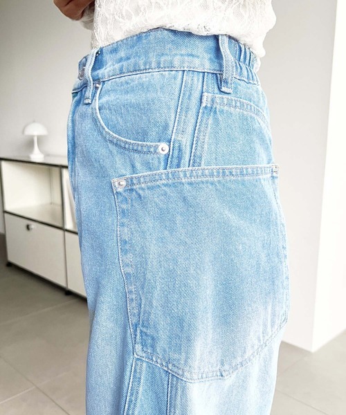 日系品牌服飾 moment+ 側邊大口袋拼接弧形牛仔褲 繭型褲 牛仔褲 直筒褲 寬褲 長褲 休閒褲 3色(任買兩件711免運)/預購
