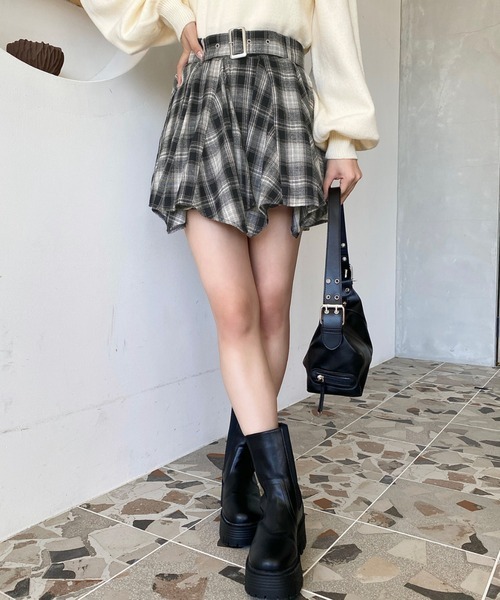 日本🇯🇵連線 Moment+ 皺褶百褶格紋迷你裙 附腰帶 百褶裙 短裙 迷你裙 格紋 裙子 A字裙 5色(任買兩件711免運)/預購