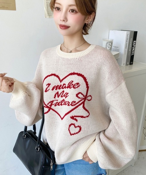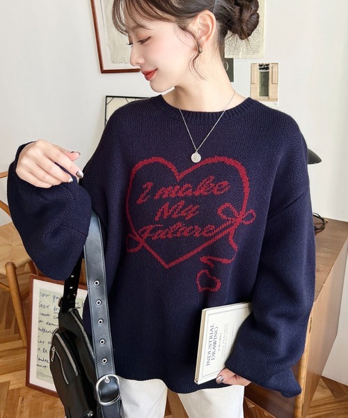 日本🇯🇵連線 Moment+ 心型印花提花針織套頭衫 提花 愛心 心型 針織 針織衫 套頭衫 長袖 6色(任買兩件711免運)/預購