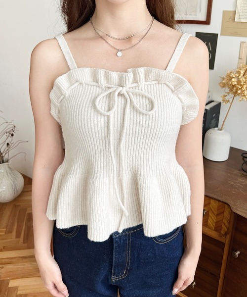 日本🇯🇵連線 Moment+ 抽繩緞帶吊帶背心+糖果袖短披肩套裝 針織 針織衫 套頭衫 長袖 4色(任買兩件711免運)/預購