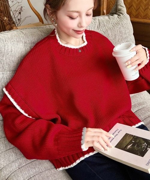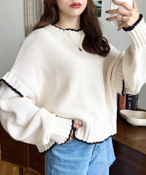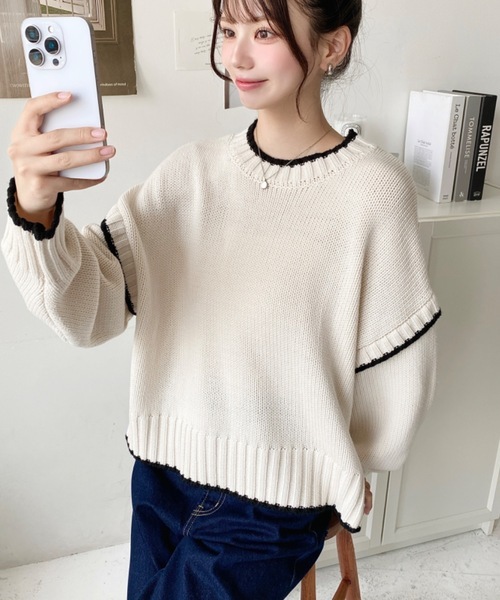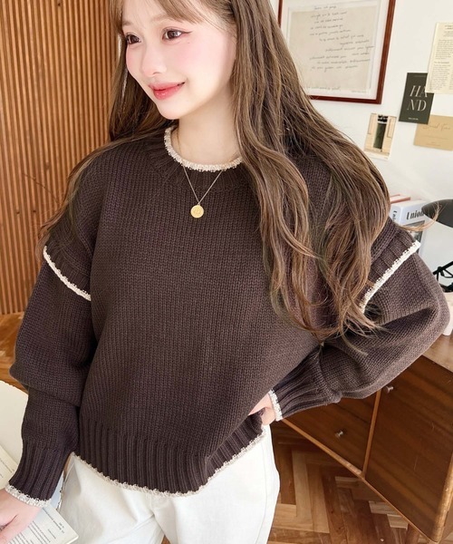 日本🇯🇵連線 Moment+ 撞色邊線休閒針織套頭衫 寬羅紋 針織 針織衫 套頭衫 長袖 5色(任買兩件711免運)/預購
