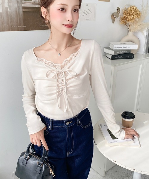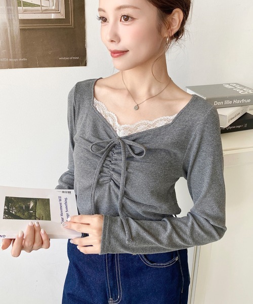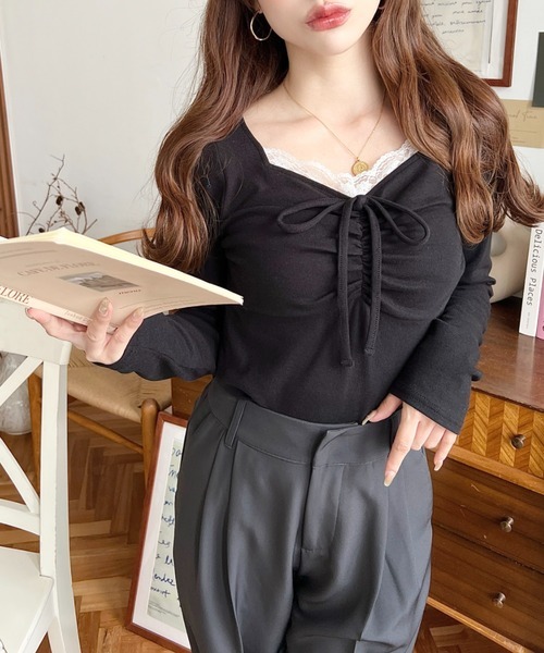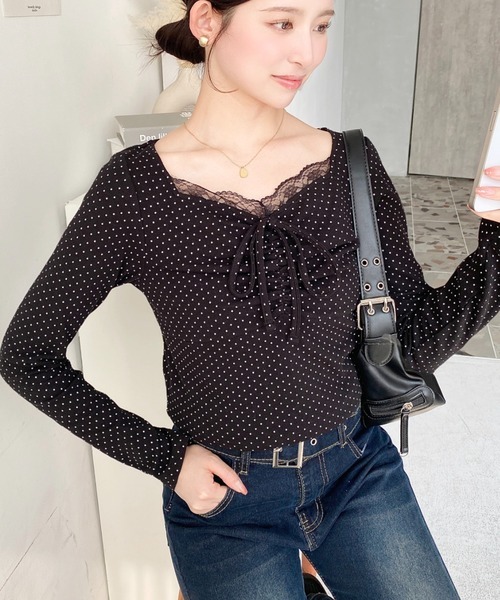 日本🇯🇵連線 Moment+ 蕾絲褶皺緞帶長袖上衣 綁帶 點點印花 蕾絲 緞帶 皺褶 長袖 5色(任買兩件711免運)/預購