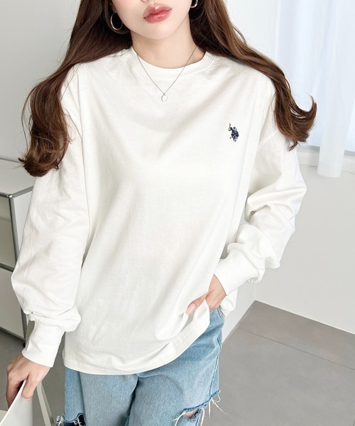日本🇯🇵連線 Moment+ x U.S. POLO ASSN. 基本款素色刺繡長袖T恤 刺繡 休閒 長袖 落肩 T恤 4色(任買兩件711免運)/預購
