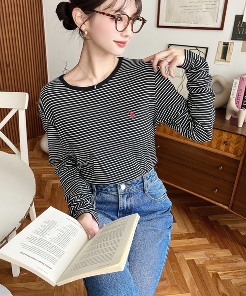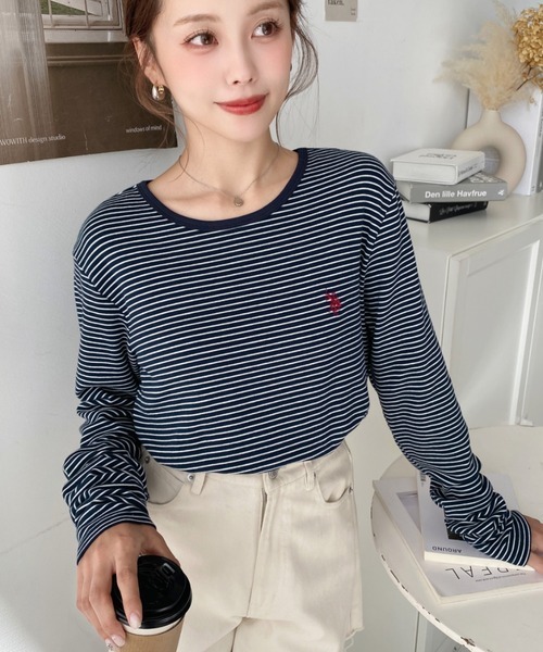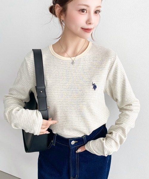 日本🇯🇵連線 Moment+ x U.S. POLO ASSN. 細細線條刺繡長袖T恤 刺繡 線條 條紋 休閒 長袖 T恤 5色(任買兩件711免運)/預購