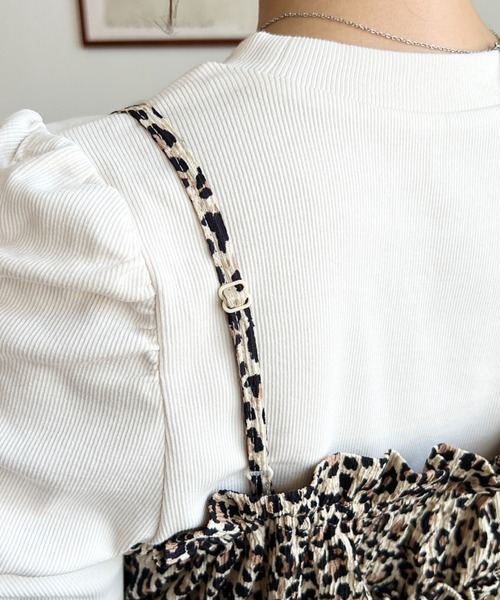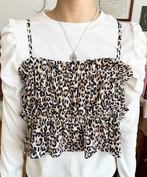 日本🇯🇵連線 Moment+ 豹紋吊帶背心&羅紋長袖套裝 豹紋吊帶 荷葉邊 肩褶設計 羅紋針織 泡泡袖 長袖 4色(任買兩件711免運)/預購
