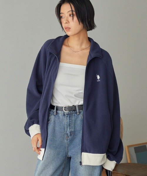 日本🇯🇵連線 MONO-MART x U.S. POLO ASSN. 刺繡邊線羊毛運動外套 刺繡 外套 立領 抓絨材質 長袖 情侶外套 4色(任買兩件711免運)/預購