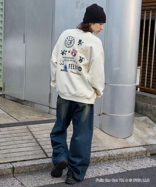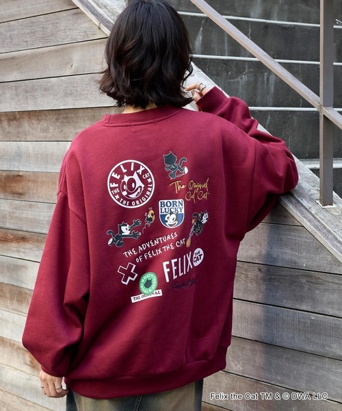 日本🇯🇵連線 MONO-MART x FELIX 菲力貓 復古印花羊毛襯裡長袖T 復古美式 印花 插畫風 寬鬆 落肩 長袖 休閒 6款(任買兩件711免運)/預購