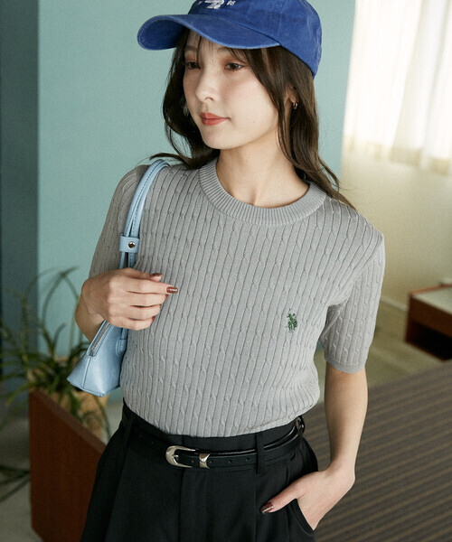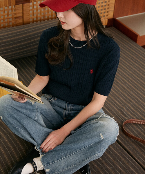 日本🇯🇵連線 U.S. POLO ASSN. × PUBLUX 刺繡電纜針織短袖上衣 T恤 短袖 休閒 刺繡 針織 5色(任買兩件711免運)/預購