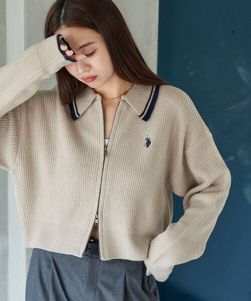 日本🇯🇵連線 U.S. POLO ASSN. X PUBLUX 學院風刺繡翻領雙拉鍊針織衫 短版 針織 開襟衫 針織衫 長袖 刺繡 4色(任買兩件711免運)/預購