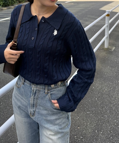日本🇯🇵連線 U.S. POLO ASSN. 刺繡針織麻花Polo衫 麻花 針織 針織衫 POLO衫 長袖 刺繡 4色(任買兩件711免運)/預購