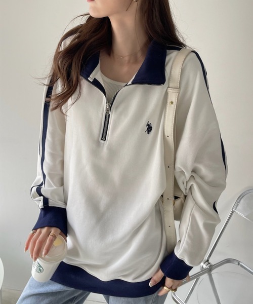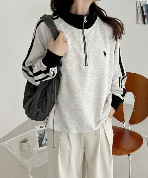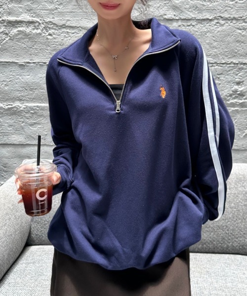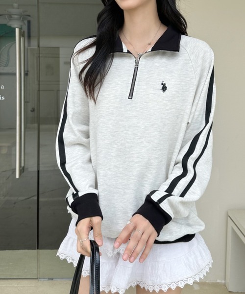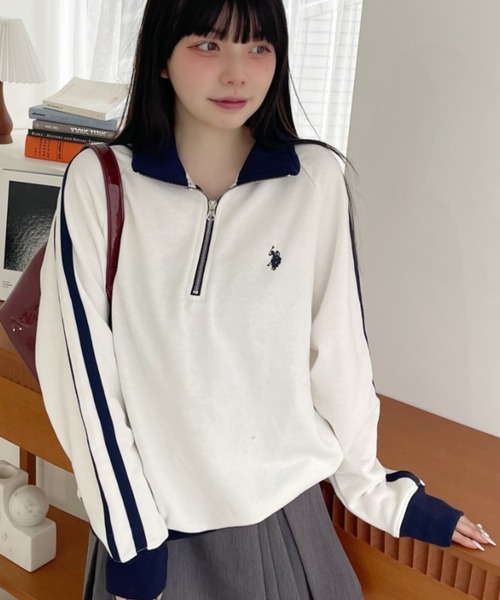 日本🇯🇵連線 U.S. POLO ASSN. 線條配色設計半拉鍊運動衫 男女可穿 刺繡 半拉鍊 運動衫 休閒 長袖 6色(任買兩件711免運)/預購
