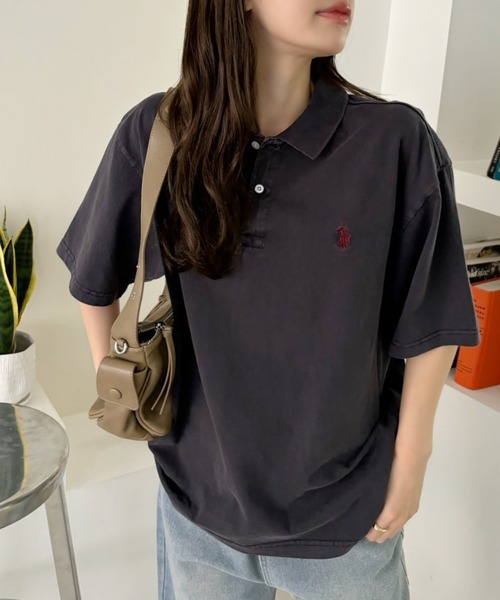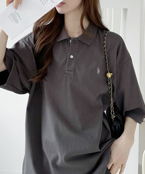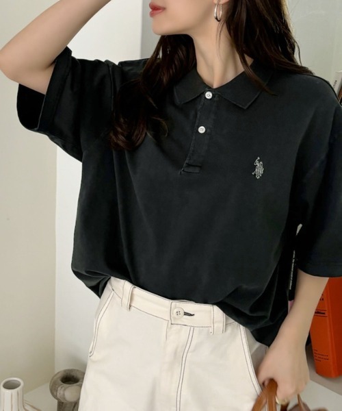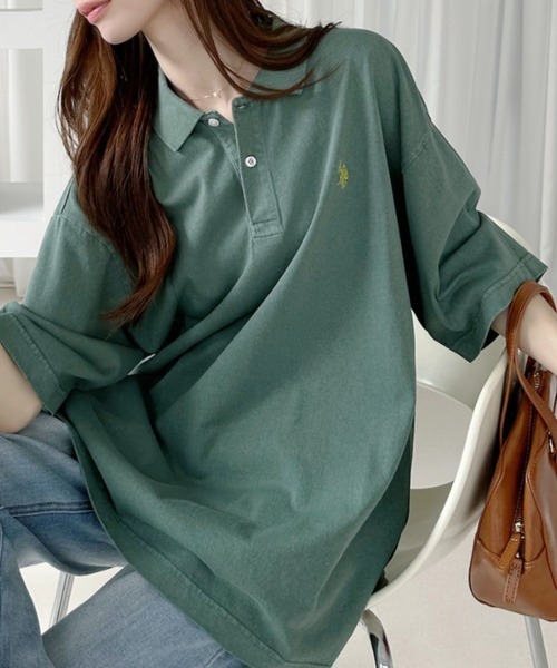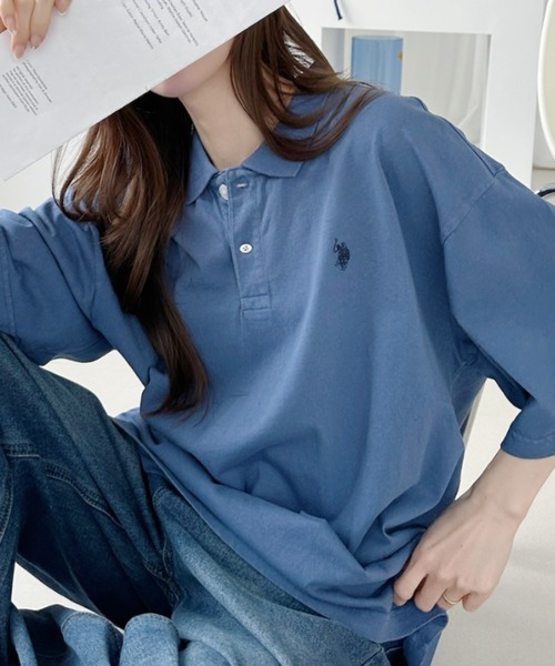 日本🇯🇵連線 U.S. POLO ASSN. x Ada. 小logo刺繡作舊顏料超寬鬆Polo衫 寬鬆 落肩 刺繡 Polo衫 作舊 6色(任買兩件711免運)/預購