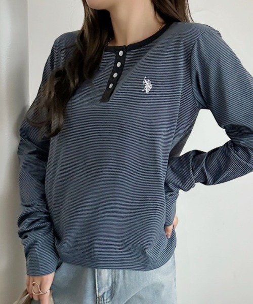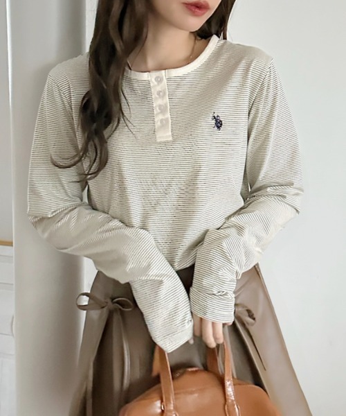 日本🇯🇵連線 U.S. POLO ASSN. x Ada. 刺繡亨利領條紋上衣 簡約 打底 內搭 長袖 刺繡 5色(任買兩件711免運)/預購