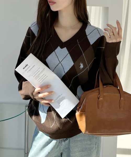 日本🇯🇵連線 U.S. POLO ASSN. 學院風V領菱形格紋針織衫 針織 針織衫 學院風 長袖 刺繡 4色(任買兩件711免運)/預購