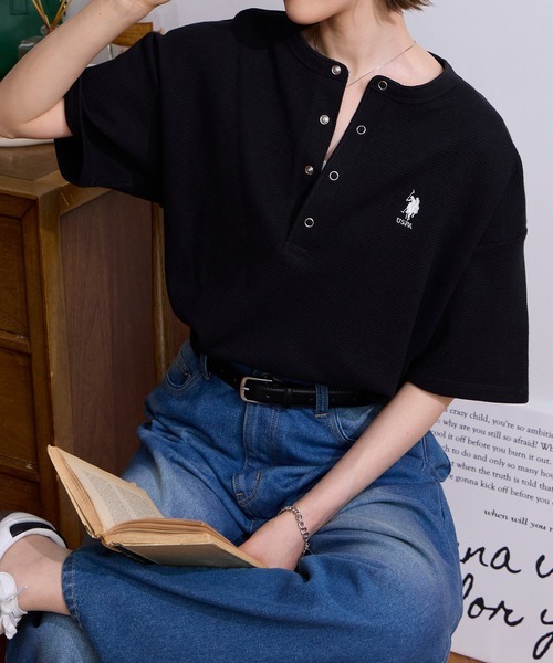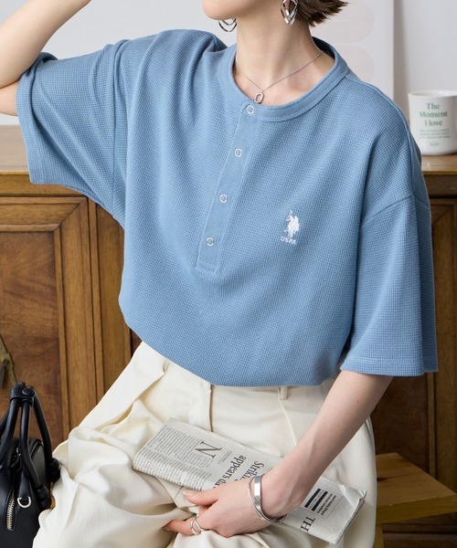 日本🇯🇵連線 U.S. POLO ASSN. x MONO-MART 刺繡華夫格亨利領T恤 簡約 短袖 刺繡 華夫格 T恤 8色(任買兩件711免運)/預購